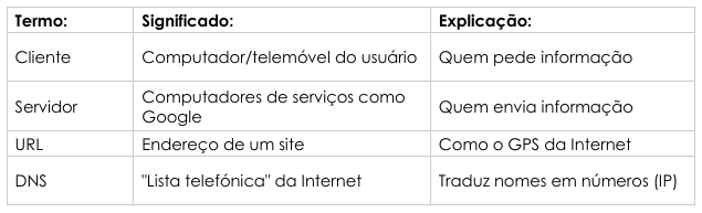 – Explicar o que é a Internet, entender como ocorre a comunicação entre computador e servidor e identificar elementos como DNS, URL, navegadores e motores de busca.
