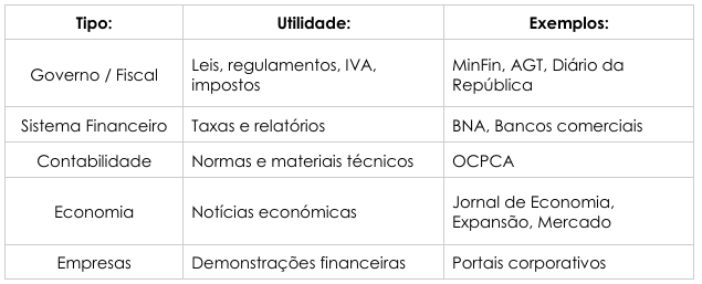 4. FONTES CONFIÁVEIS PARA CONTABILIDADE E GESTÃO (Angola): #