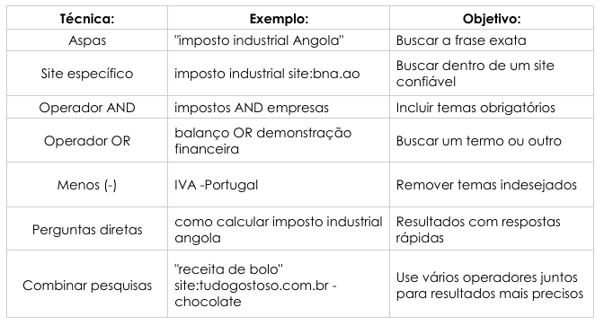- Google. Como usar operadores de pesquisa no Google (Pesquisa Avançada).